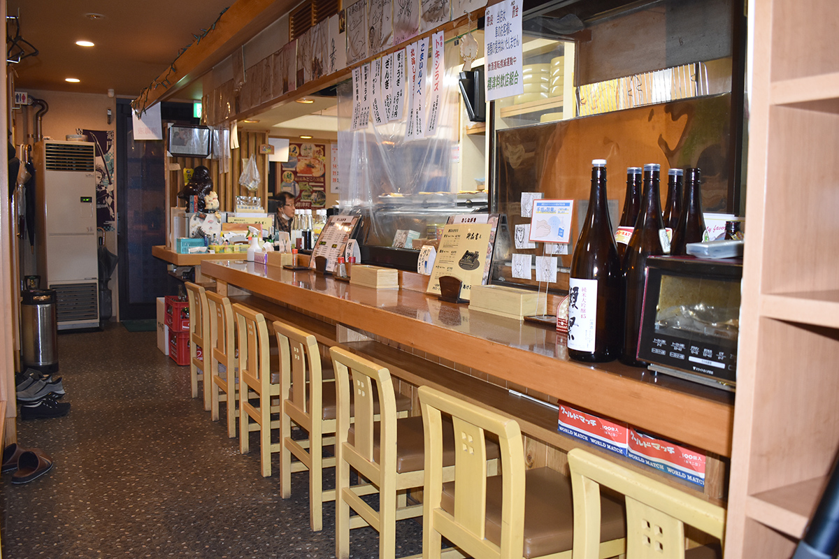 お寿司以外にも刺身・焼物・串・丼ものなど、バラエティー豊かなメニューが揃っており、季節ごとに旬の食材とお酒を堪能できるのも魅力の一つです。また、地元の日本酒『北の勝』をはじめ、様々な美味しいお酒が揃っています。
